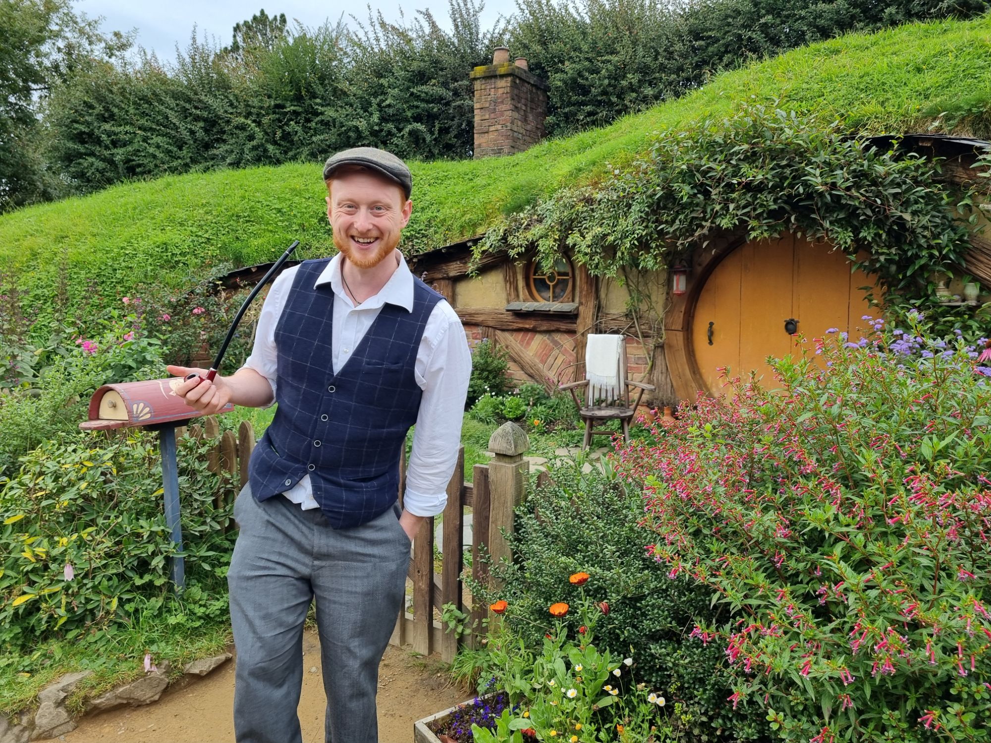 Then we headed by bus to the entrance of Hobbiton itself. A guided tour around the village that was so full of life, trivia, and obviously incredible views! We were guided by Kate, a long-time Hobbiton guide (and also a Hobbit *in* the Hobbit trilogy. She can be seeing carrying away Bilbo’s dining chairs as he returns to find Bag End being auctioned off). Thanks to Julie, I got to sprint down the path carrying my contract and shouting, “I’m going on an adventure,” before wandering around and snapping every kind of photo imaginable!