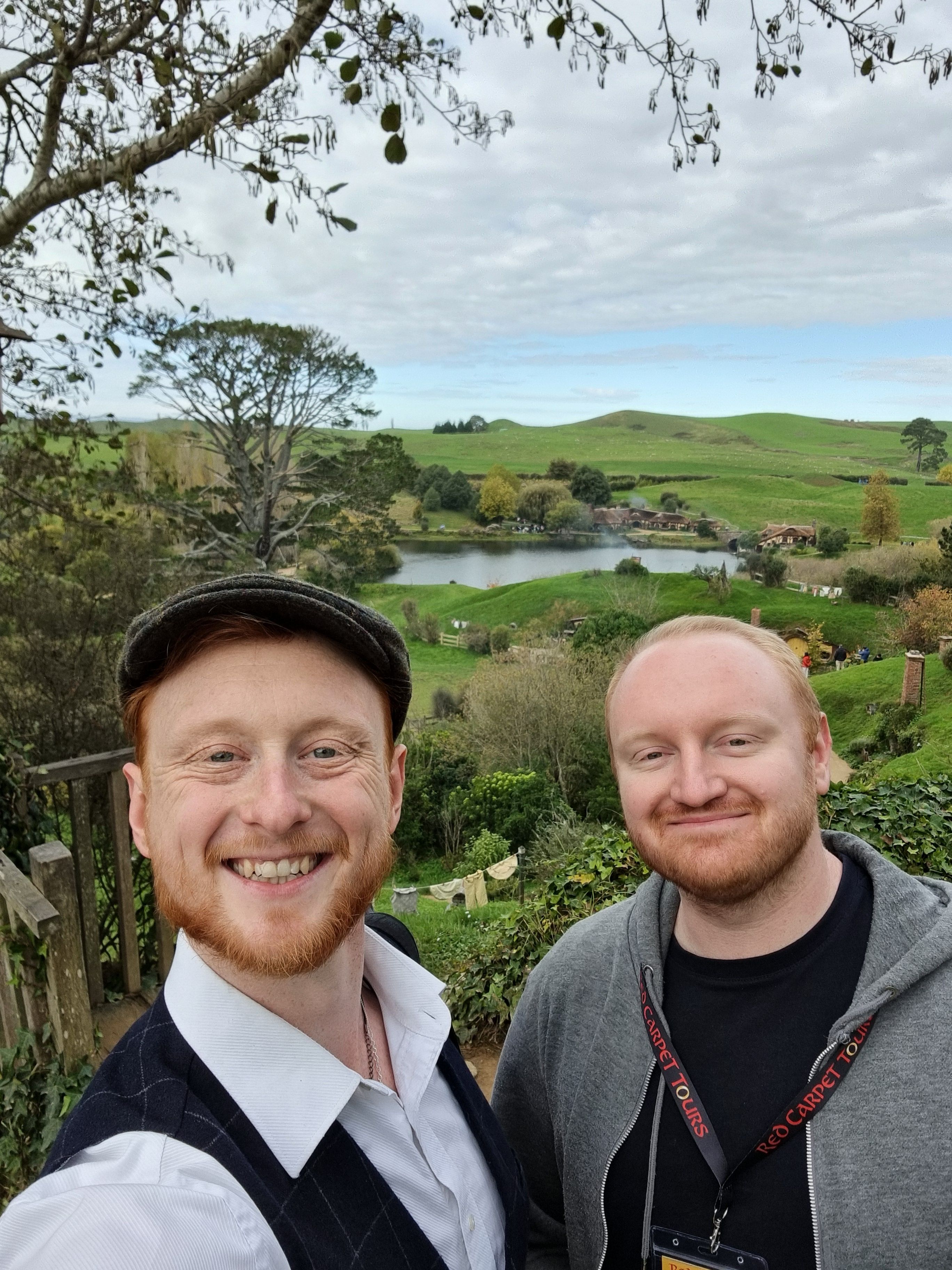 We first made our way out of Auckland after a wonderful breakfast, meeting Liam and Emily, friends from Glasgow, chatting more with McKenzie and Joseph, and toward Matamata over beautiful rolling hills and mountains that took the Malverns and dialled then up to 11, even giving the Brecon Beacons of Wales a damn good run for their money!