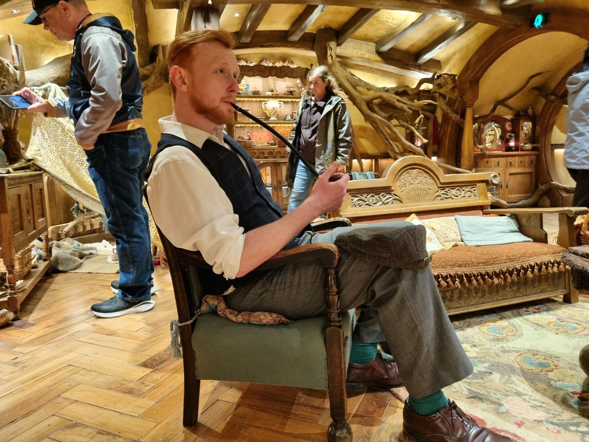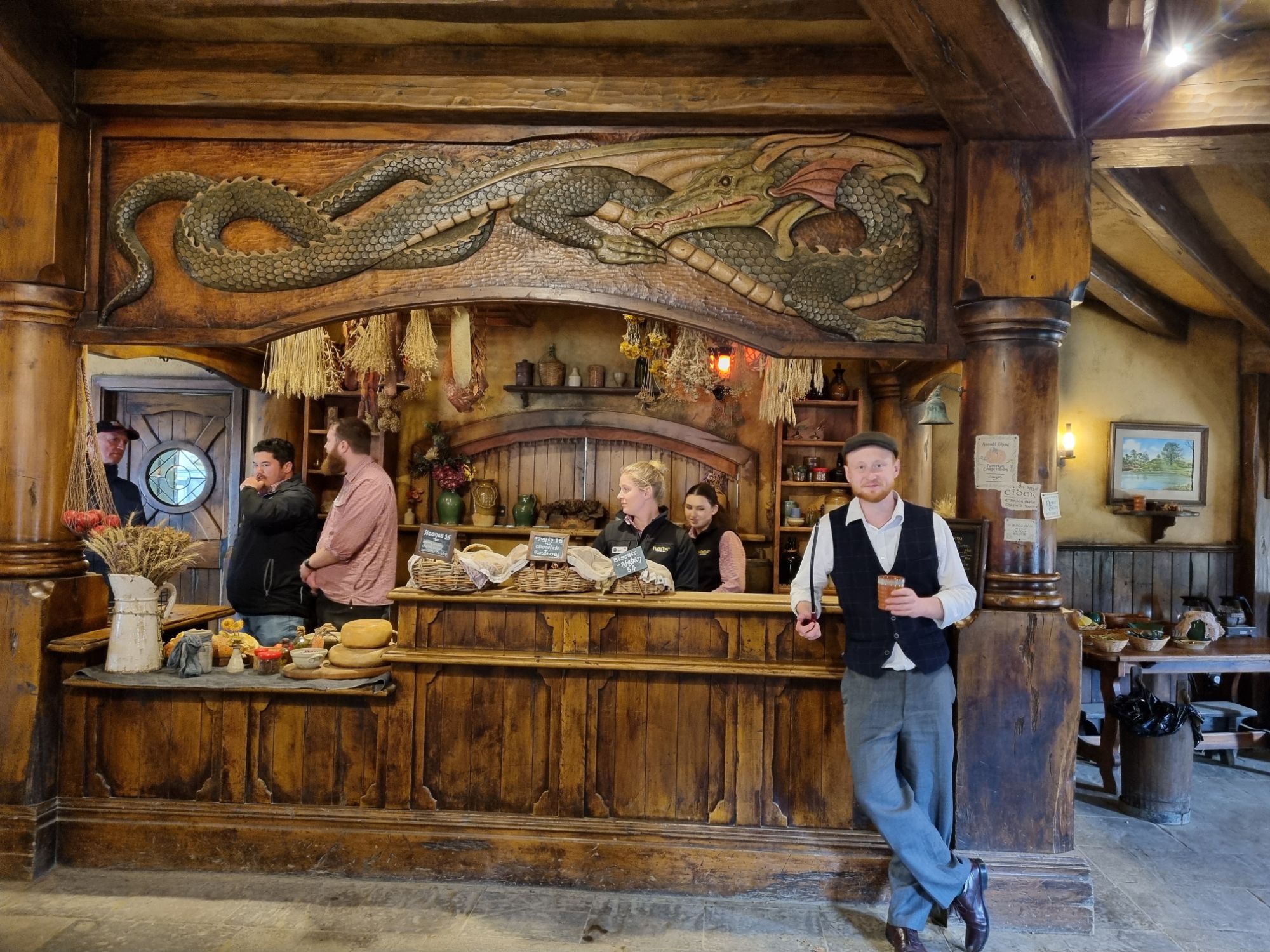 The holes are gorgeously designed, some large scale (for Hobbit actors), and some small (for “tall” actors that need to shoot for scale. Each home is unique for a unique hobbit, some mentioned, some created. We walked Bagshot Row, saw the Old Gaffer Gamgee’s house (Samwise’s dad), Sam and Rosie’s house, saw the party tree, and, for book fans, you can walk past Ted Sandyman’s Mill (who briefly appears in the LOTR movies) which works and wheels away as you cross the bridge to the Green Dragon, where I happily drank a legitimately *phenomenal* stout. As a Brit, it felt like a real home.
