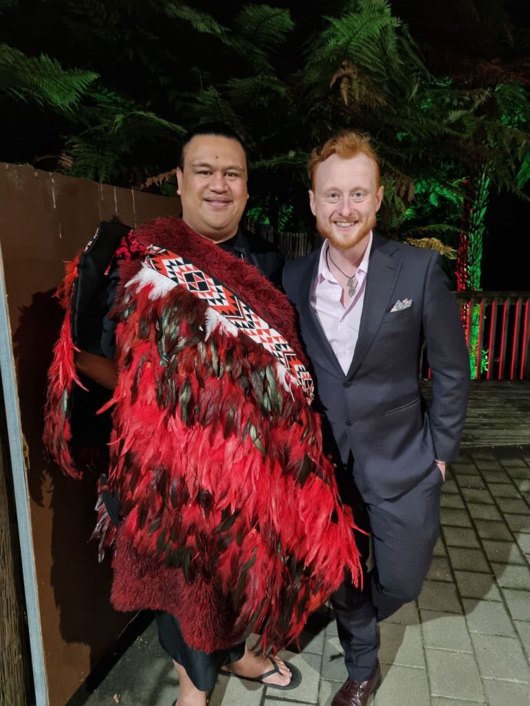 Then came the “Orator’s” speech in Te Reo Māori. Te translated privately to me on stage, whispering that the audience was being thanked for coming here in peace, but that he was making a special mention of my suit to say that the colours matched my Kahu huruhuru (a feather cloak given to dignitaries. Jacinda Ardern wore one in Buckingham Palace, I was in good company.) and that that must mean that I was fated to be here today as the Chief of the Visitors. Then the speech. I wanted to acknowledge this event, this culture and not treat it as a tourist trap. That truly is NOT what this was at all. The weight of the ceremony hit me the moment Te spoke to me about it. This was very real, very deep and very serious in its reverence. I wanted to honour and respect that.