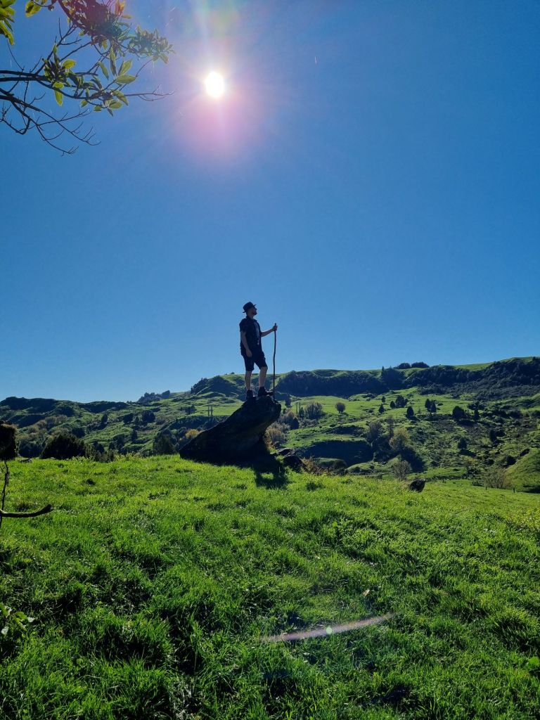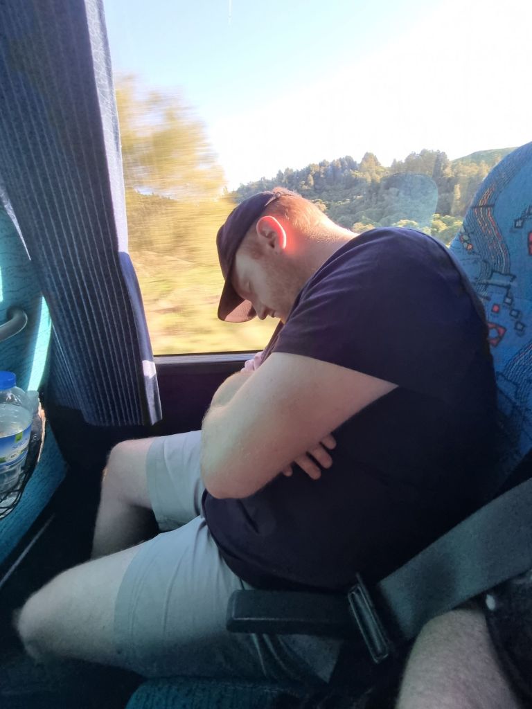 After our visit, we started our 2 hour journey back West to Lake Taupō (the largest freshwater lake in all Australasia. It can fit all of Singapore inside its borders!), passing more limestone cliffs and bluffs and incredible panoramas. It’s true… there are no “boring/bad” views in Aotearoa. They simply don’t exist. In the meantime though, Jon decided to become a contortionist.