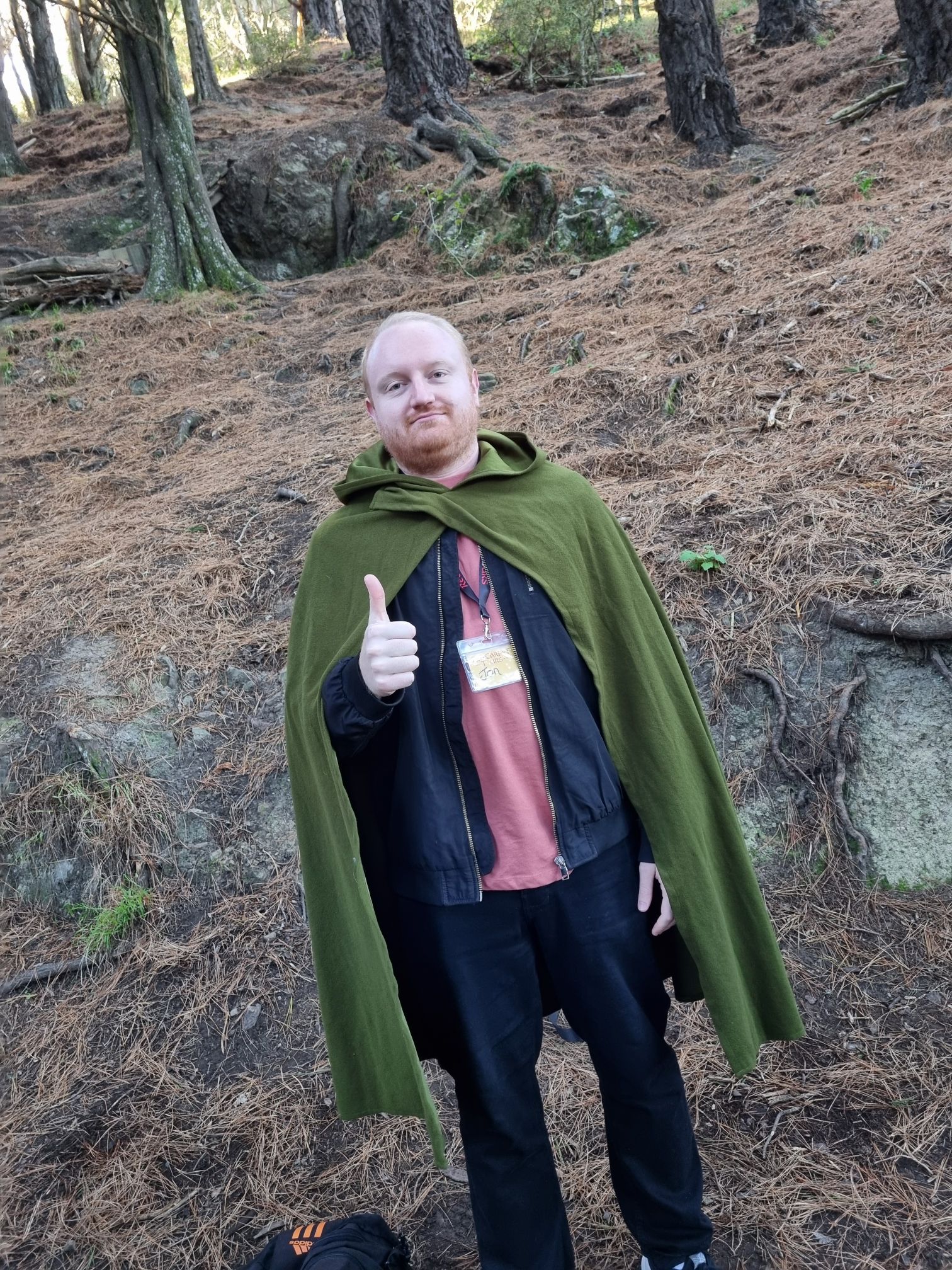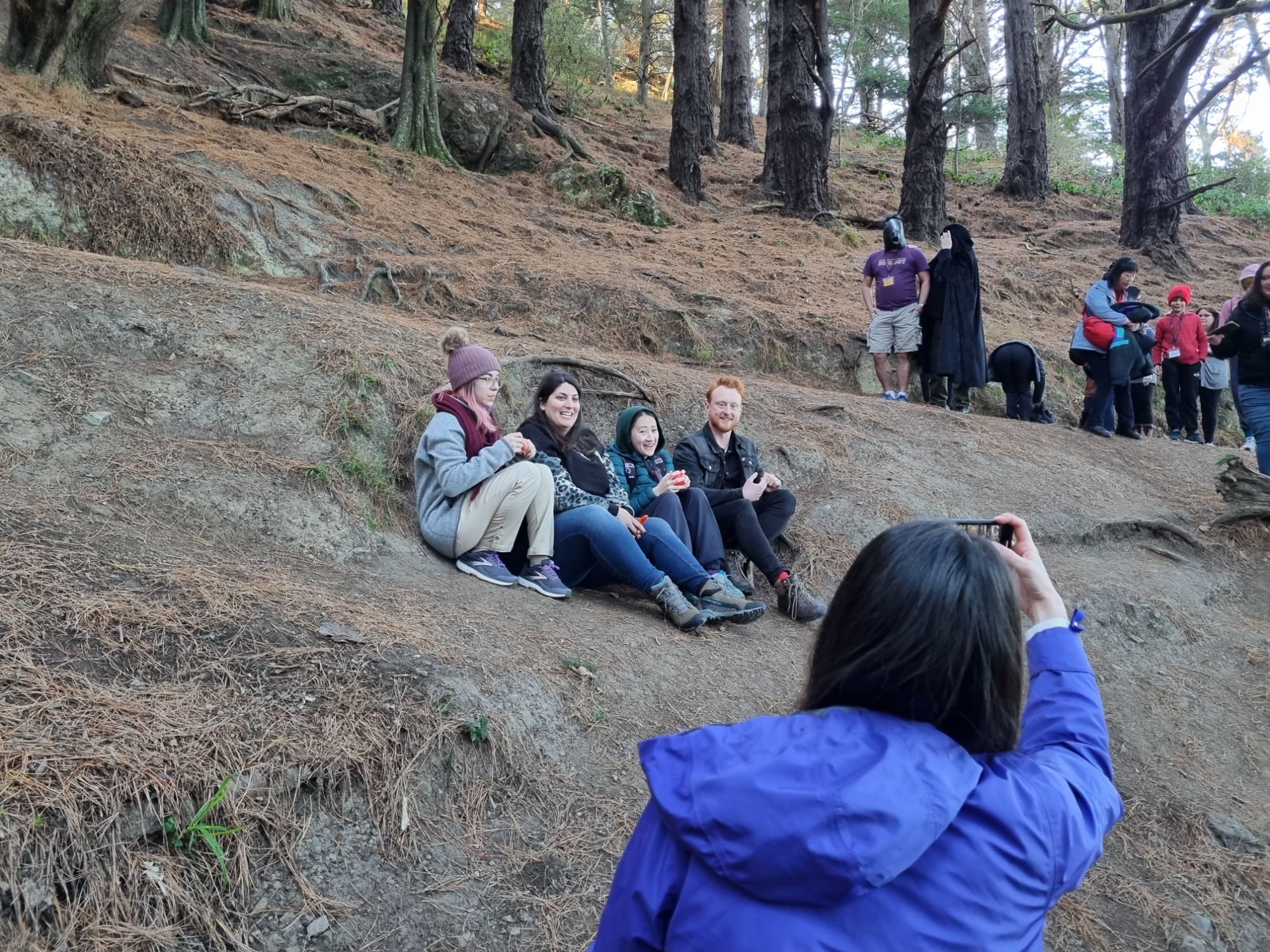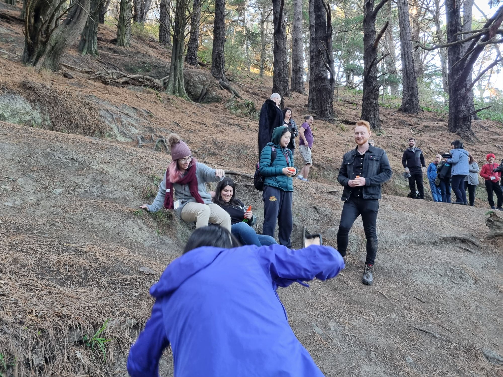 We hid ourselves from Black Rider’s and filmed the scenes again. The kids on our tour had a great time! Before walking just down a slope and found ourselves at another location! The camp Frodo and Sam have when they suddenly hear the Wood Elves passing by toward the Havens.
