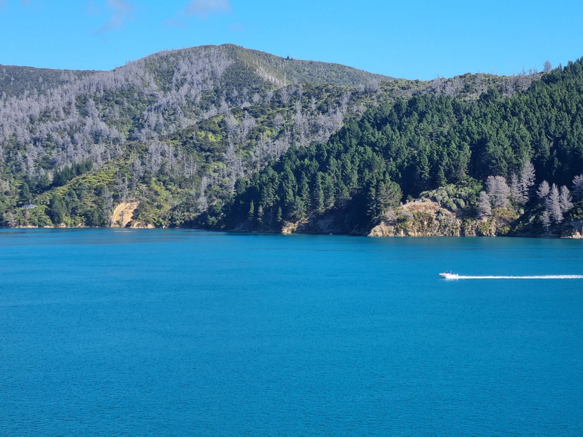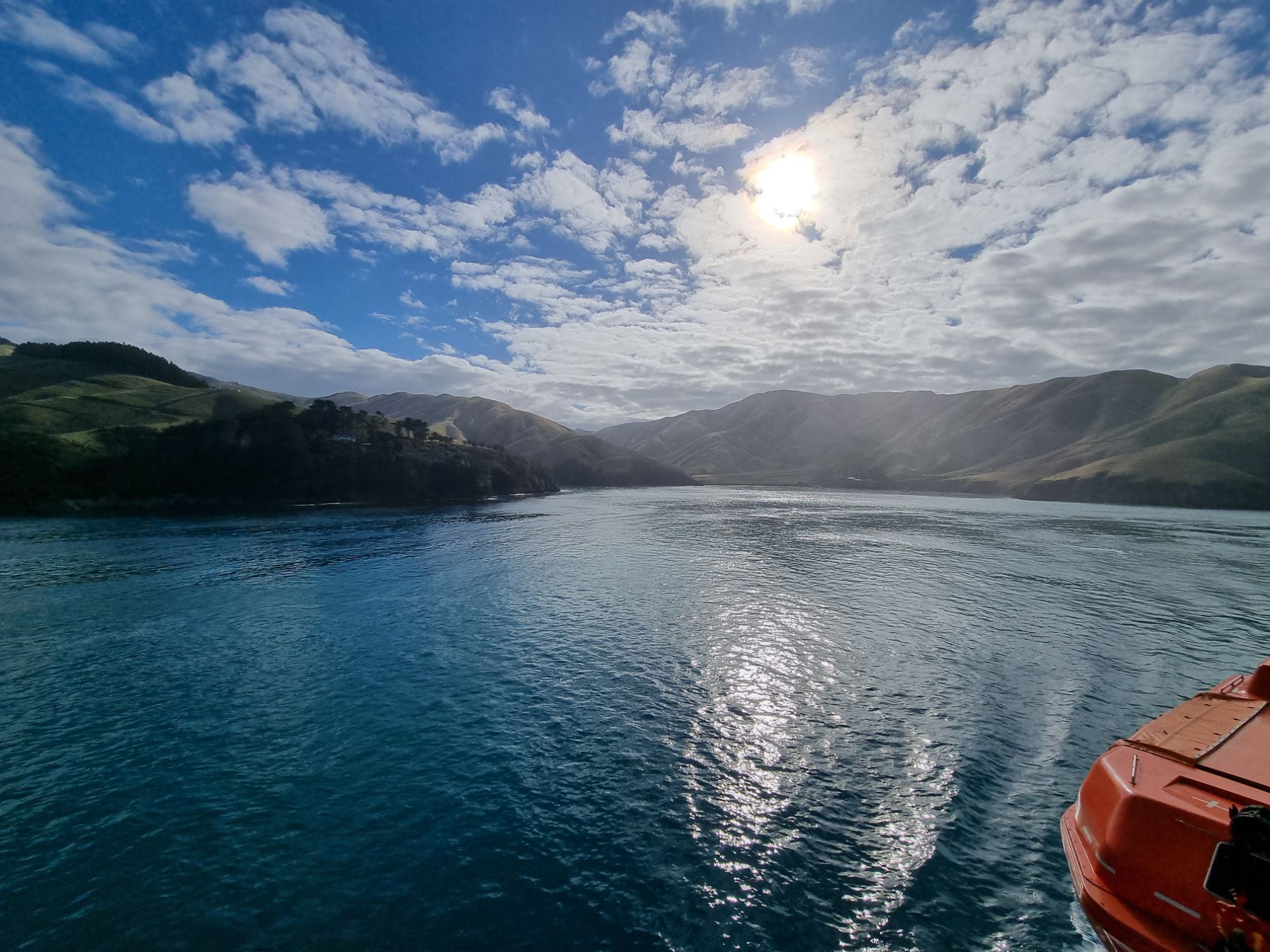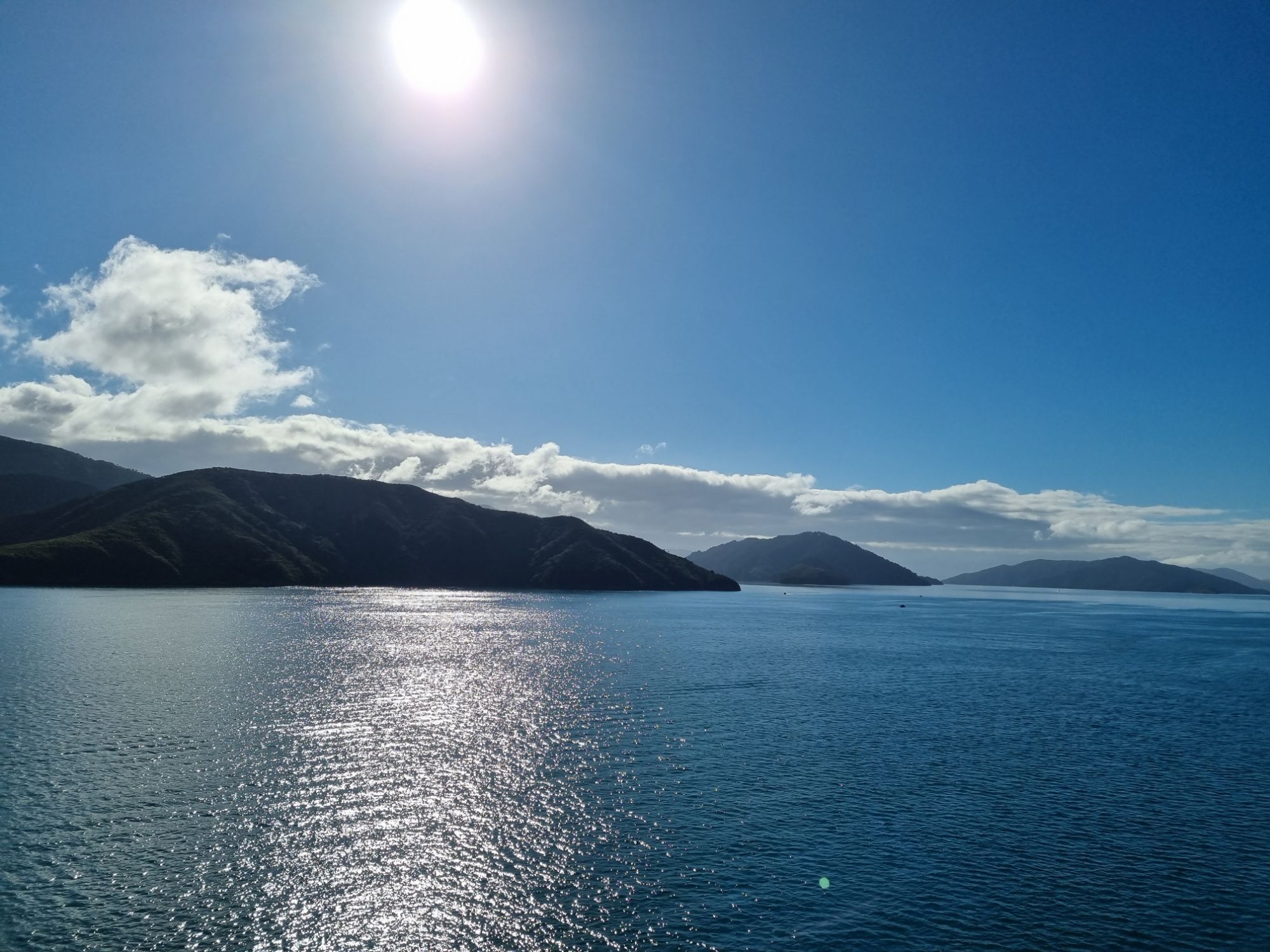 The voyage itself was very smooth, a little choppy after leaving the Bay of Wellington before hitting the Cook Strait, but otherwise, it was comfortable, and the weather outside on the top deck was very warm objectively. McKenzie and I, followed by the others (Jon had to take a moment to look green bordering on translucent first), sat and talked for most of the journey across the Strait, which was wonderful. Especially to start with as being on a tour, we don’t tend to have much time to talk 1-1 with each other. It was nice to get that time. What followed can only be summed up by a lot of photos rather than anything else. We entered the Queen Charlotte Sound and were lost for words at the beauty. Take a Norwegian fjord, add more warmth and a touch of the You Only Live Twice Theme – welcome to the South Island!