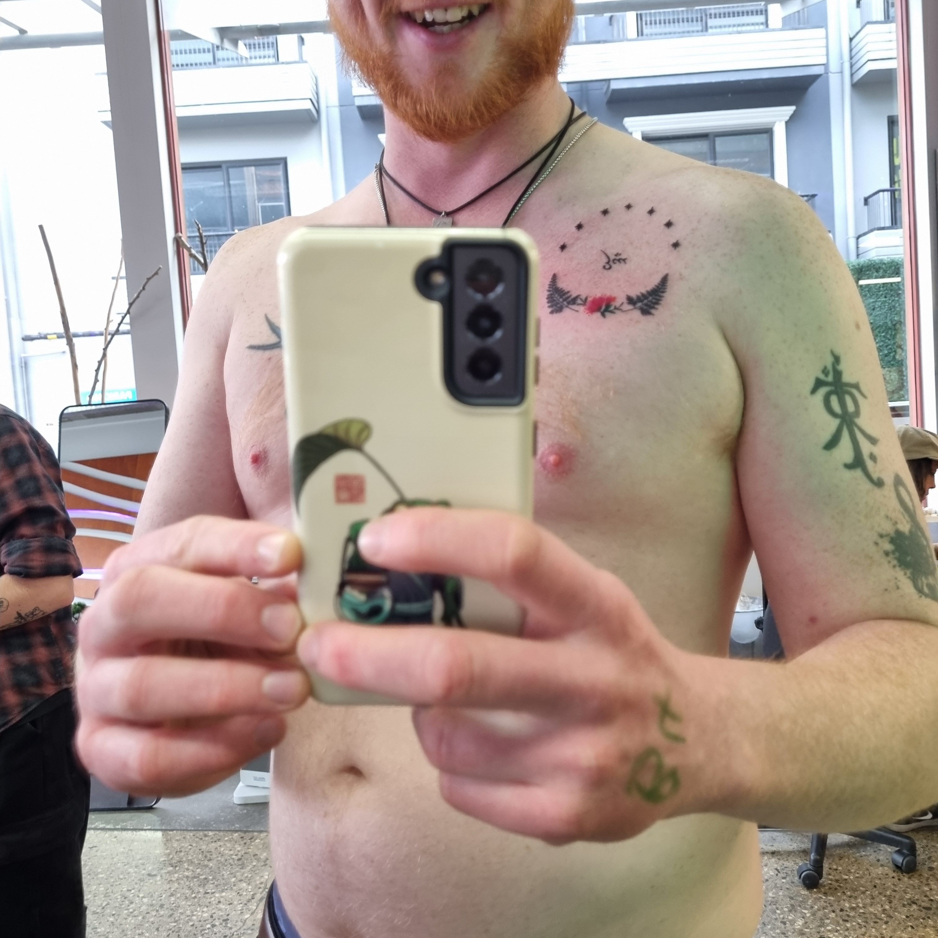 Fast forward several needles of ink, some niggling pain(?), visits from Jon and Liam, and a lovely chat about potential tattoos with McKenzie, and here we are…