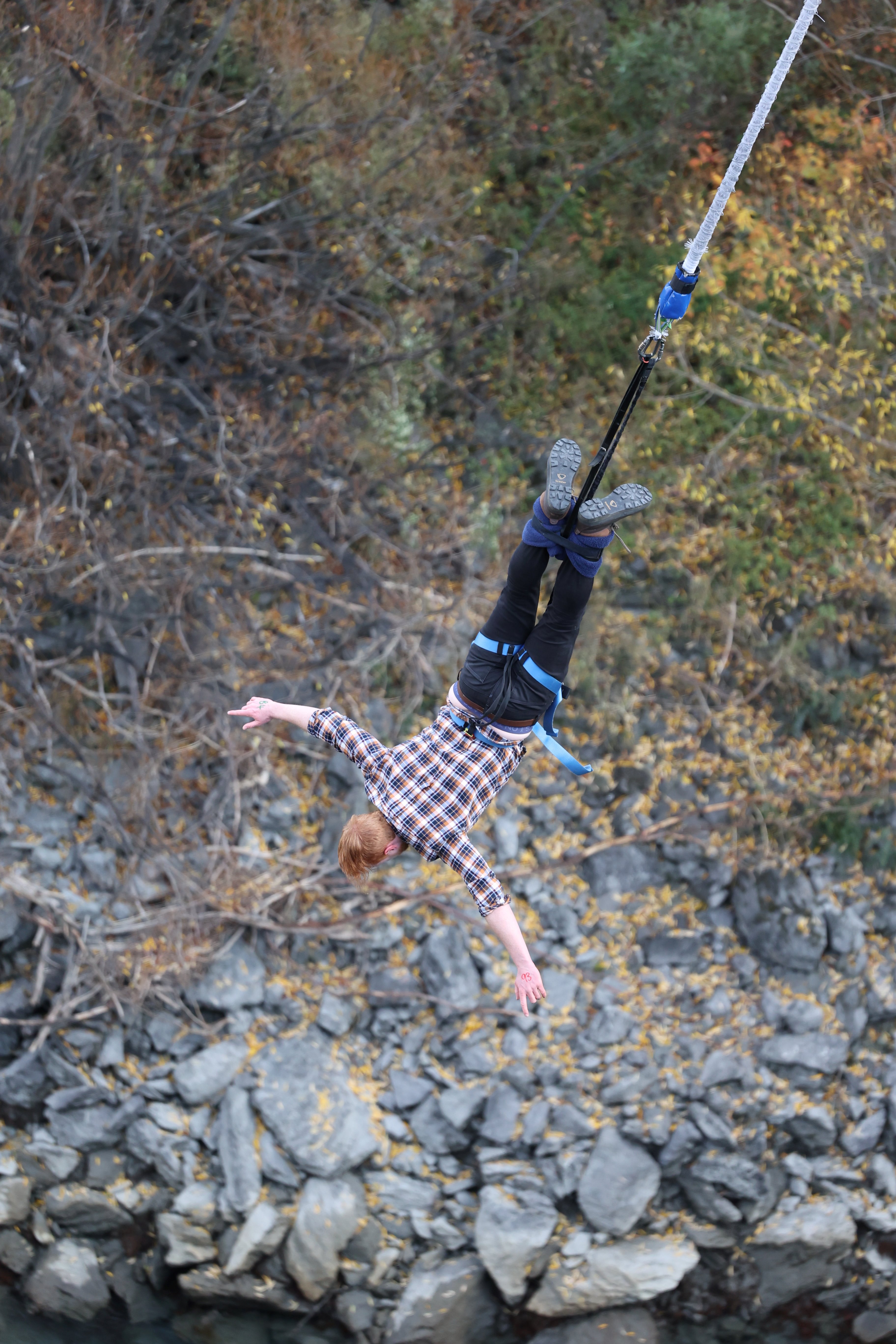 The initial plummet is unreal. There are suddenly pins and needles in your face as the speed grows, and then, the cord catches, boinnnng, speed is halved, and you’re dangling and swinging, and the rush of laughter kicks in.